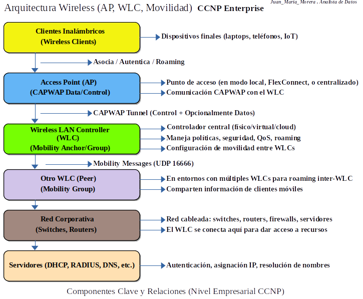 Nota: Esta arquitectura centralizada y bien definida permite construir redes inalámbricas robustas, seguras y escalables, capaces de soportar las altas demandas de movilidad de las empresas modernas.