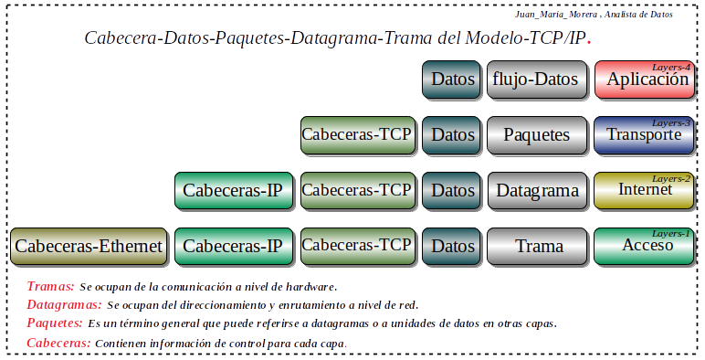 Prologo: En este post su funcionalidad es tener muy claros los conceptos de Trama, Datagrama, Paquetes, datos y cabecera para la comprensión de este modelo conceptual el “modelo-TCP/IP .