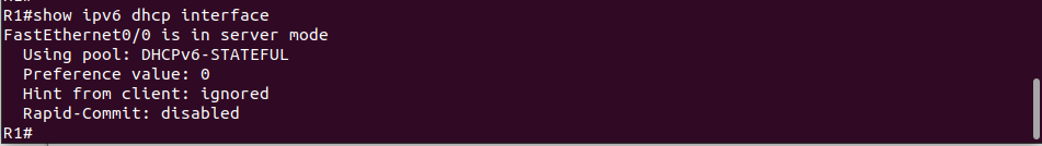 Nota: Este comando confirma en qué interfaces el router está actuando como servidor DHCPv6.