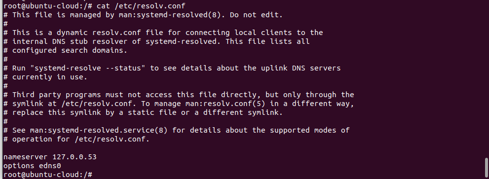- In: root@ubuntu-cloud:/# cat /etc/resolv.conf