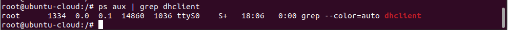 - In: root@ubuntu-cloud:/# ps aux | grep dhclient